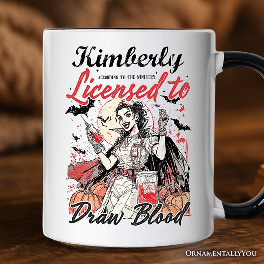 Licensed to Draw Blood Halloween Nurse Personalized Mug, Groovy Gift with Custom Name for Spooky Season