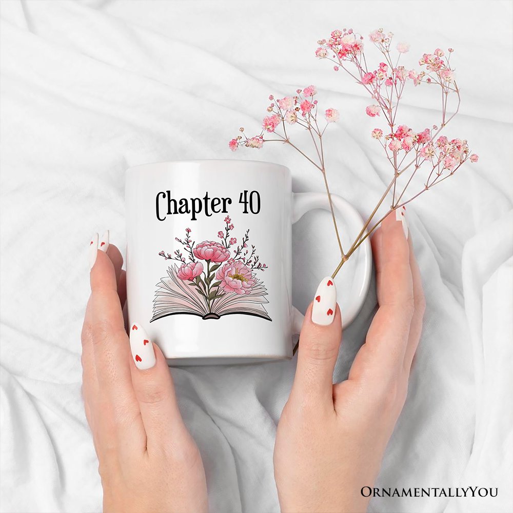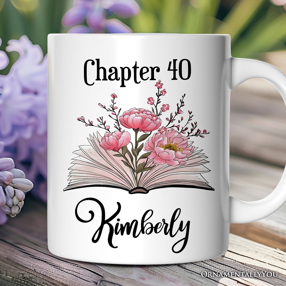 40th Birthday Pink Flowers Book Personalized Mug, Chapter 40 Gift With Custom Name