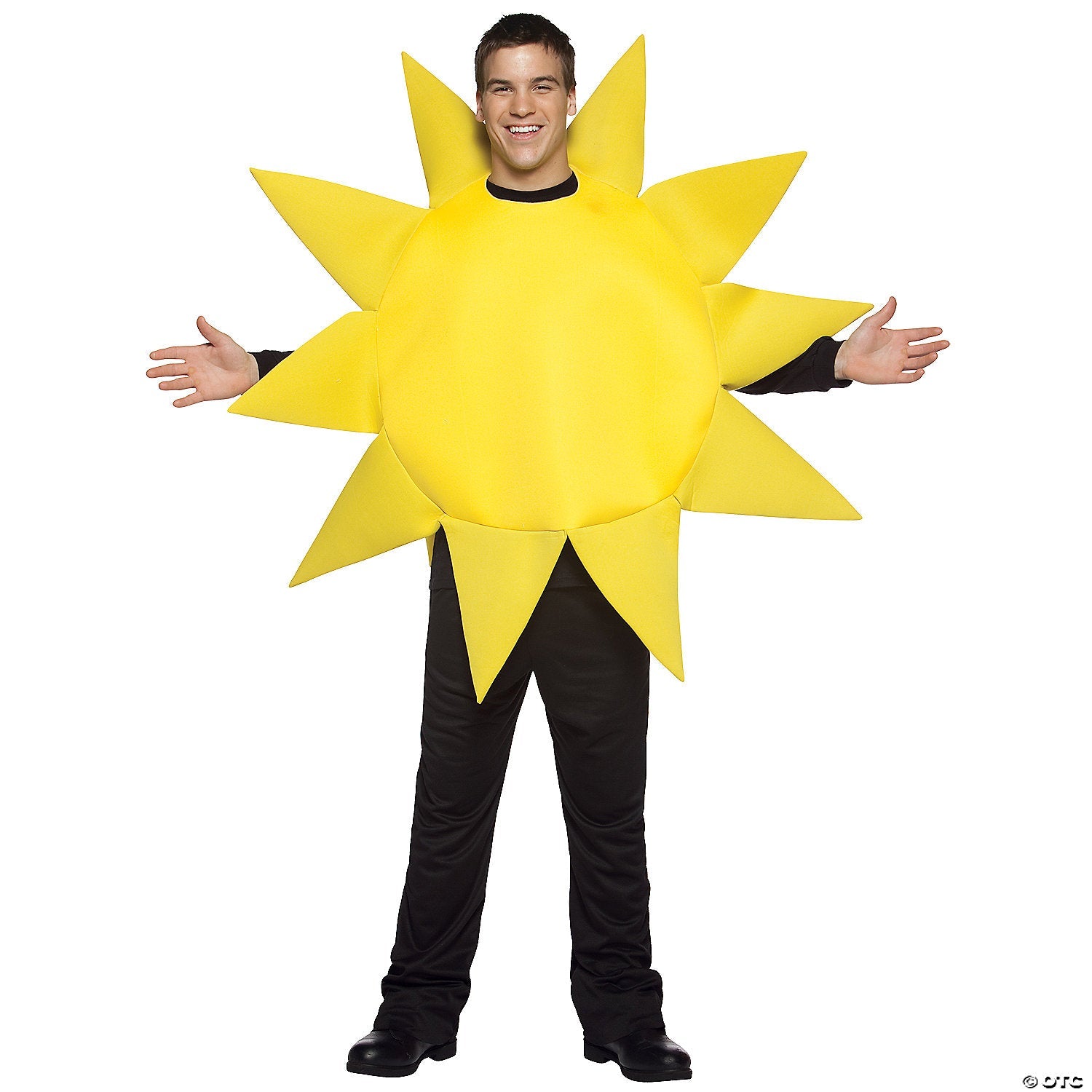 - Includes: Over the head yellow tunic depicted to look like the sun.