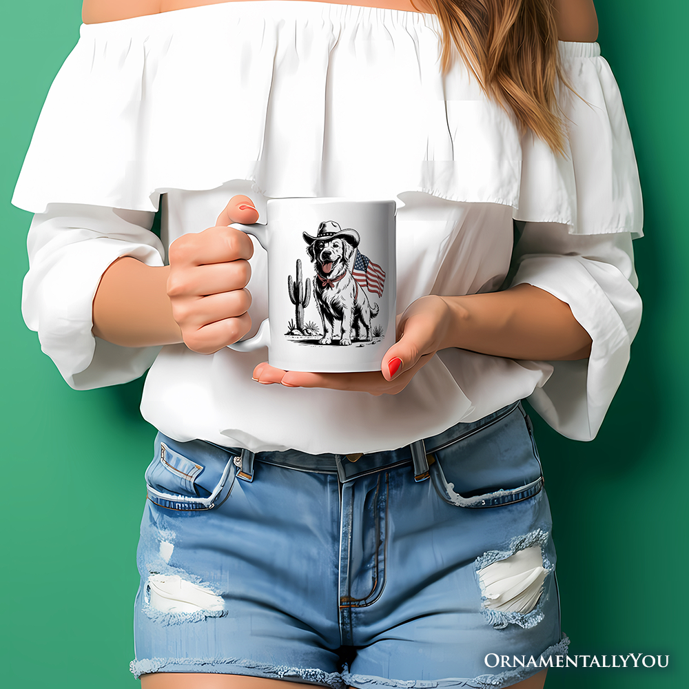 American Cowboy Dog Personalized Mug, Western 4th of July Gift with Custom Name