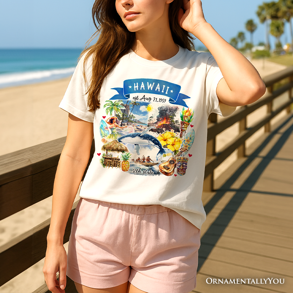 Artistic Hawaii State Themes and Landmarks T-Shirt, Tee for History and Travel Lovers