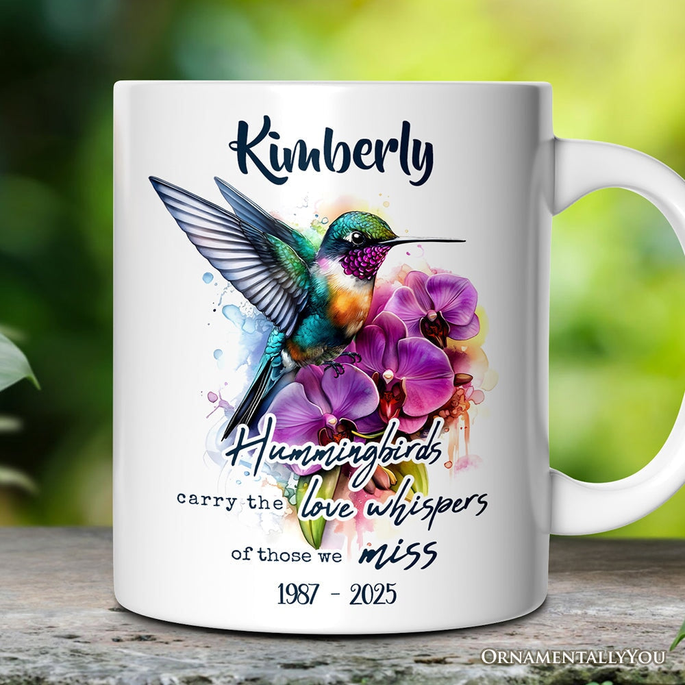 Artistic Hummingbirds Carry the Love Whispers Quote Personalized Mug, Memorial Gift With Custom Name