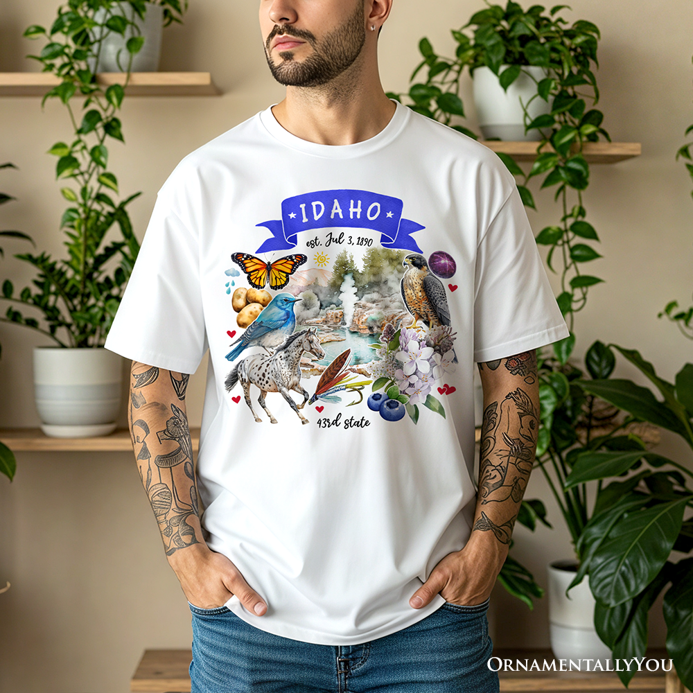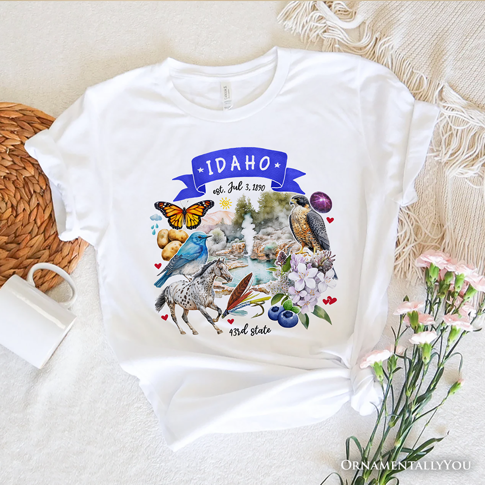 Artistic Idaho State Themes and Landmarks T-Shirt, Tee for History and Travel Lovers