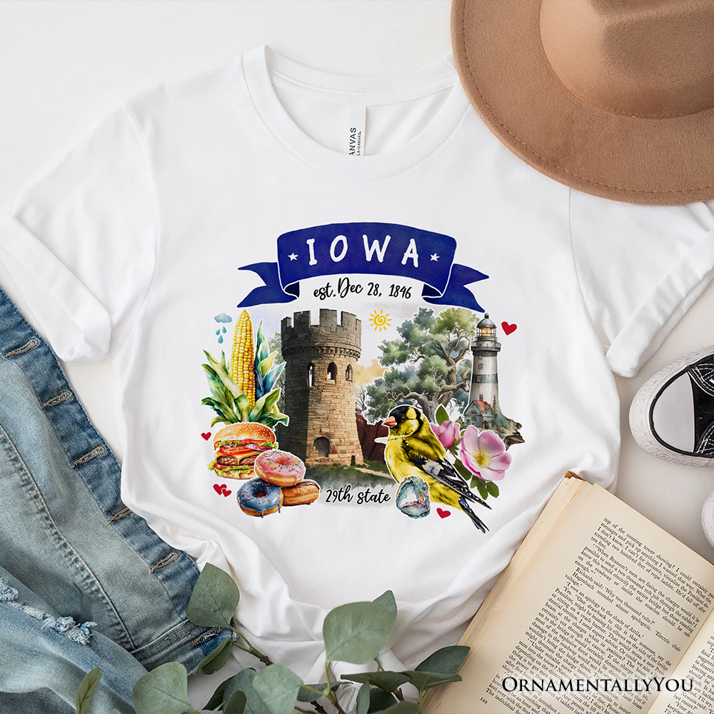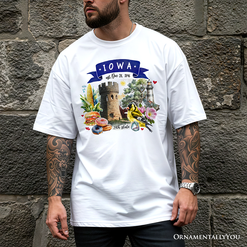 Artistic Iowa State Themes and Landmarks T-Shirt, Tee for History and Travel Lovers