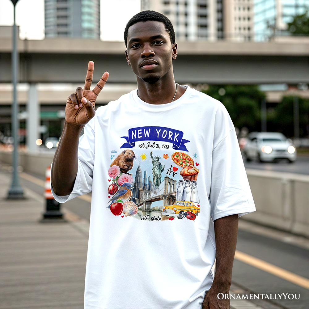 Artistic New York State Themes and Landmarks T-Shirt, Tee for History and Travel Lovers