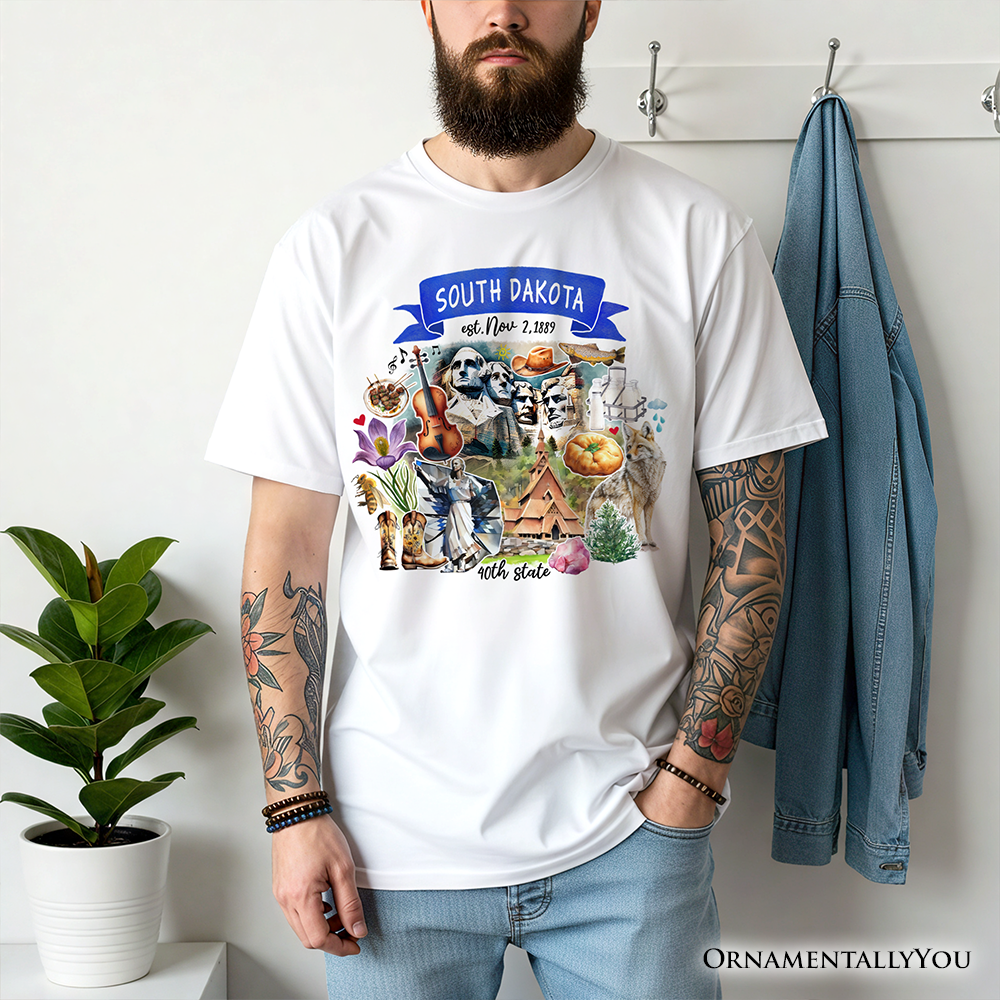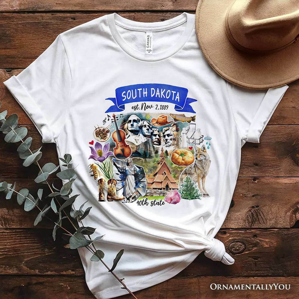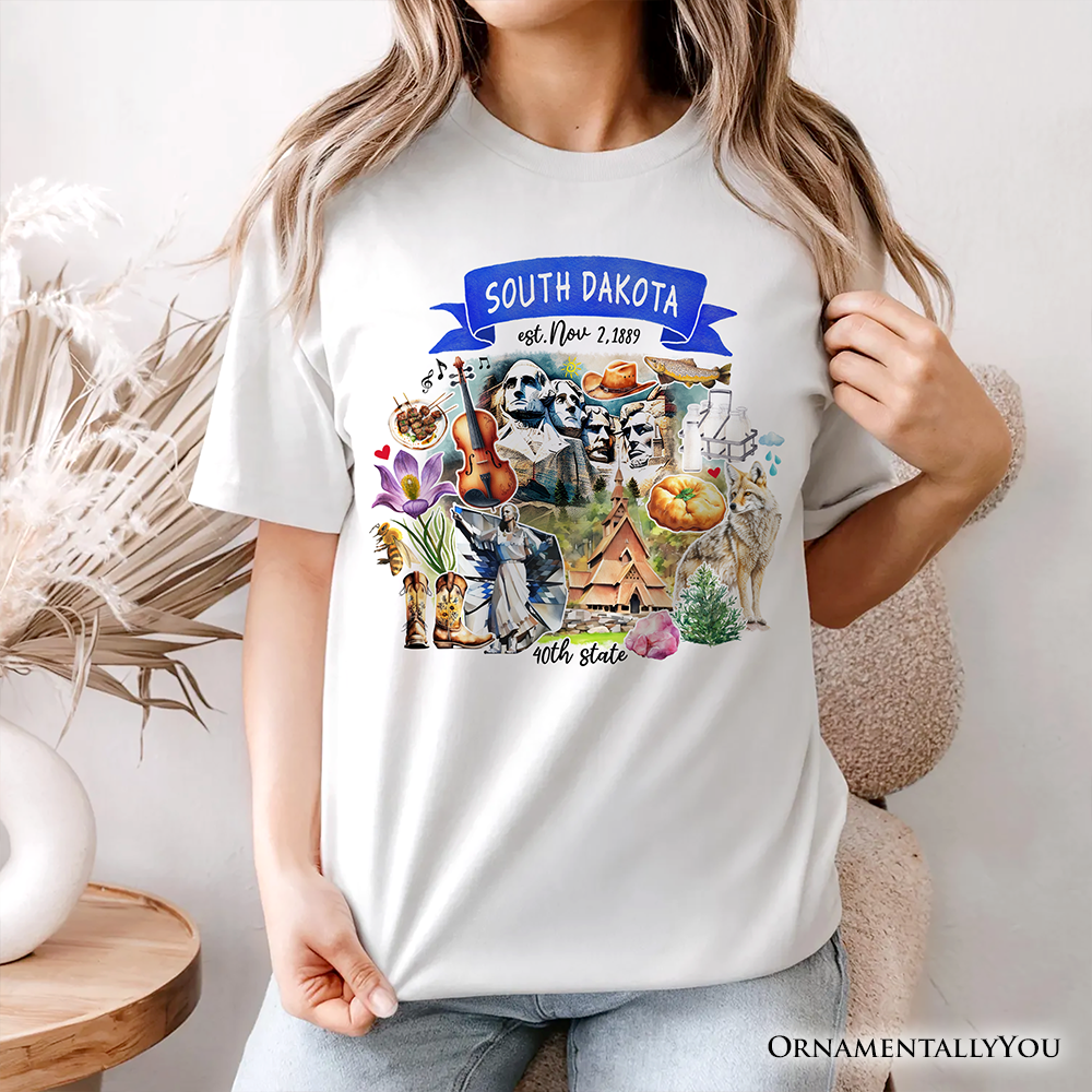 Artistic South Dakota State Themes and Landmarks T-Shirt, Tee for History and Travel Lovers