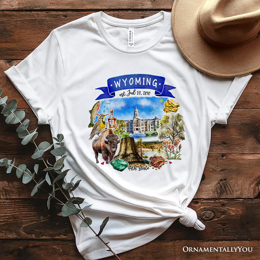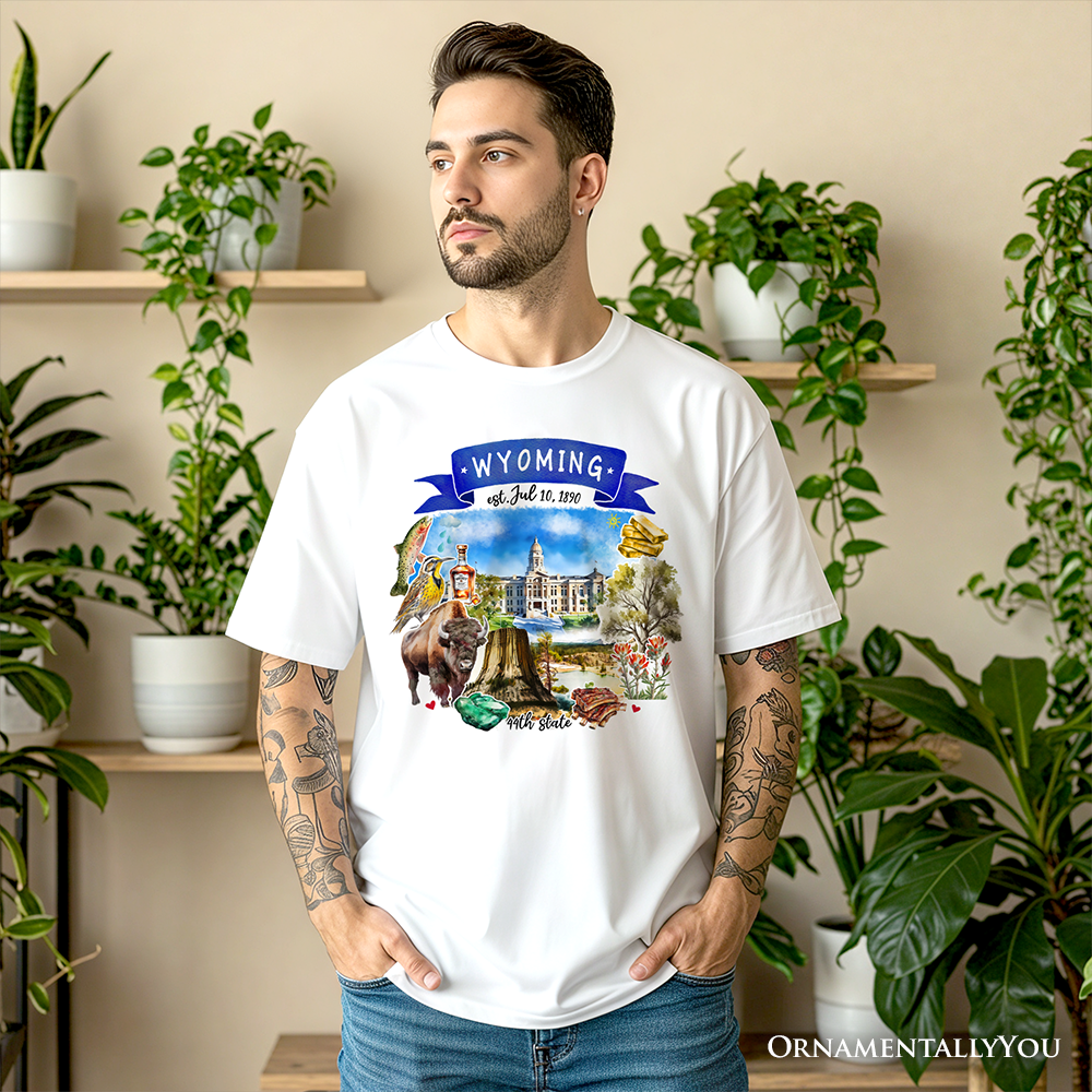 Artistic Wyoming State Themes and Landmarks T-Shirt, Tee for History and Travel Lovers