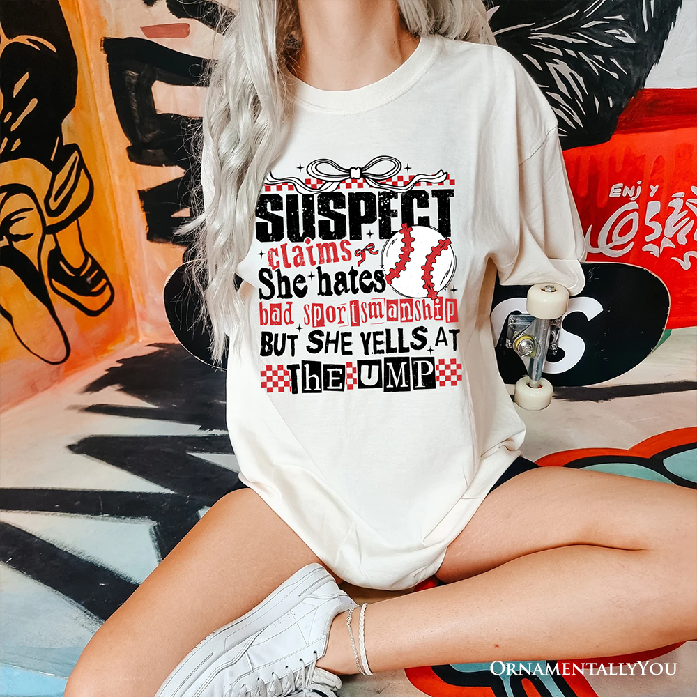Baseball Suspect Claims Fun T-Shirt, Retro White and Natural Tee With Coquette Bow