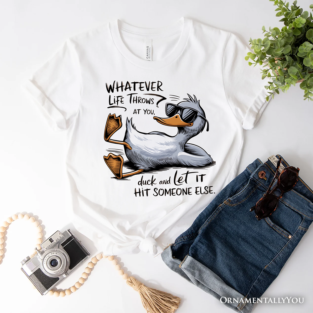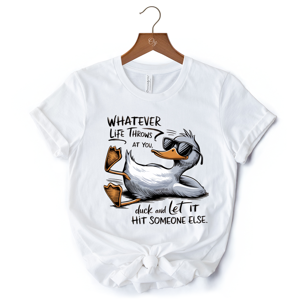 Embrace your inner sarcasm and laid-back attitude with this chill white tee featuring a quirky duck and a bold, witty life quote. 🦆😎 Designed for those who keep it cool no matter what life throws their way, this shirt blends humor with effortless style. The retro-inspired design and soft cotton fabric make it perfect for casual outings, weekend lounging, or making a statement without saying a word. Whether you're a fan of funny animals or just love ironic quotes, this tee adds personality and comfort to your everyday wardrobe. 🐣🌀