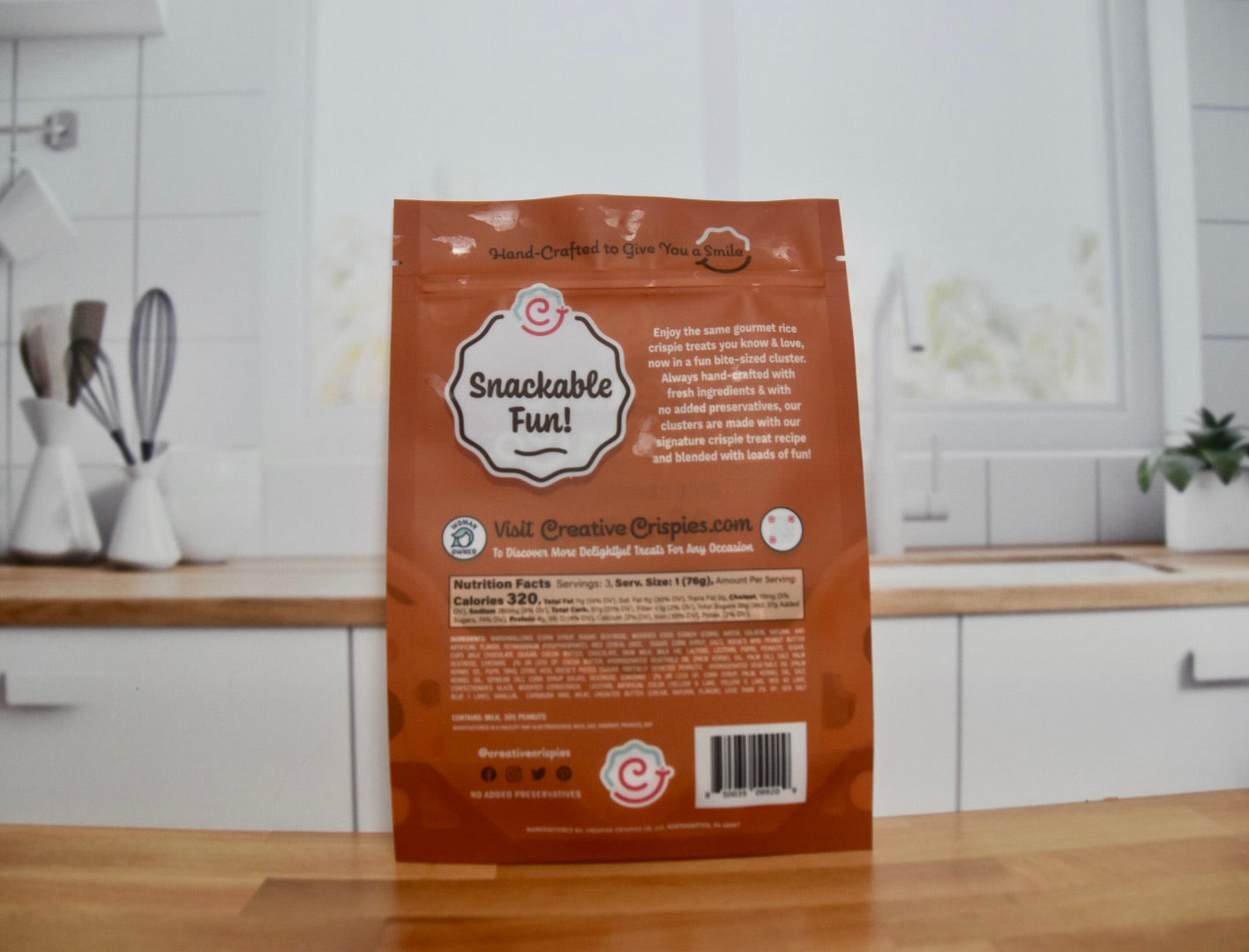 Indulge in our Chocolate Peanut Butter Cup Crispie Mix Clusters, a delightful combination of sweet and crunchy. Each cluster is generously topped with mini peanut butter cups, Reese's pieces, and fluffy mini marshmallows. Perfect for satisfying those sweet cravings, this signature treat is a must-try for all peanut butter lovers. Please note, this product contains peanuts.