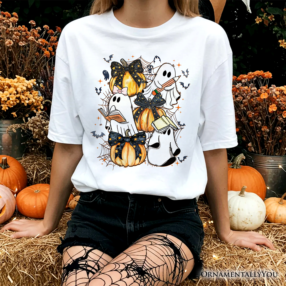 Cute Ghost Teacher Halloween T-Shirt, Retro Boo Spooky School Tee