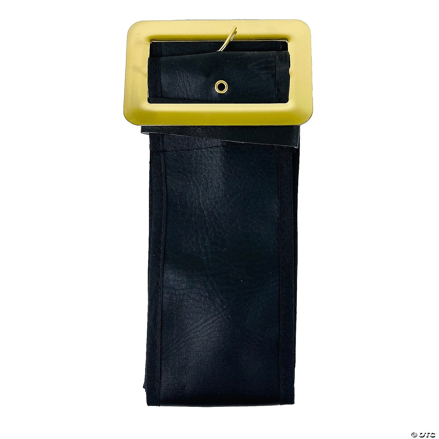 Deluxe bound wide vinyl belt has a large golden metal buckle with prong. Holes down the center of the belt have 6 fixed metal grommets to reduce wear from the metal prong. Binding along all the belt's edges help protect against fraying, ensuring a long-lasting life. Essential accessory for every Santa outfit!