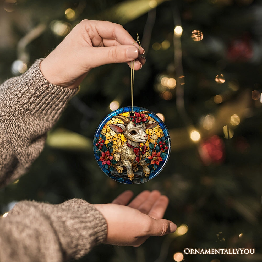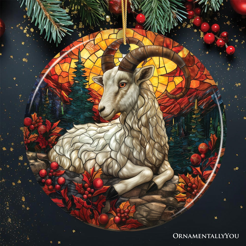 Elegant Goat Stained Glass Theme Ceramic Ornament, Billy Buck and Doe Mountain Animal Decor