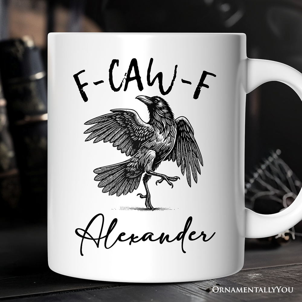 F-CAW-F Gothic Raven Personalized Mug, Snarky Halloween Gift with Custom Name