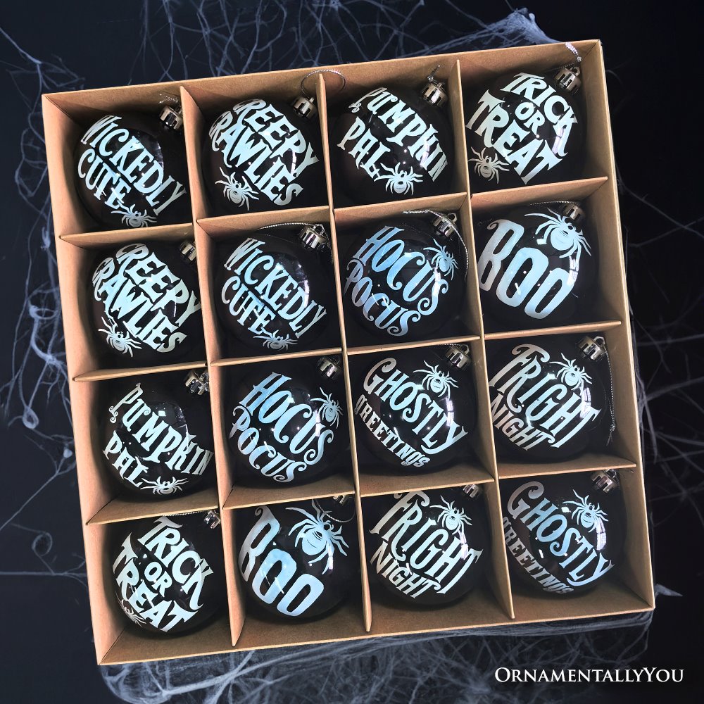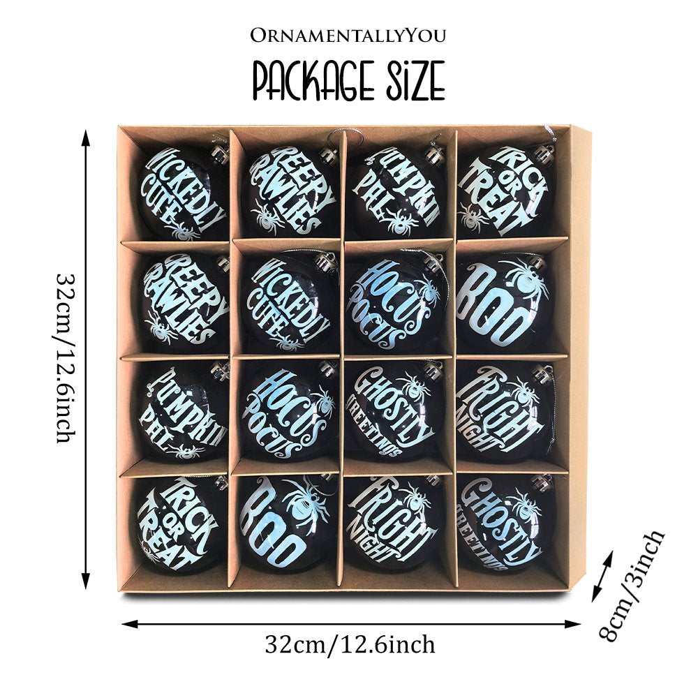 Ghastly Quotes Ornament Bauble Set of 16, Halloween Tree 3" Black and White Round Ball Decor