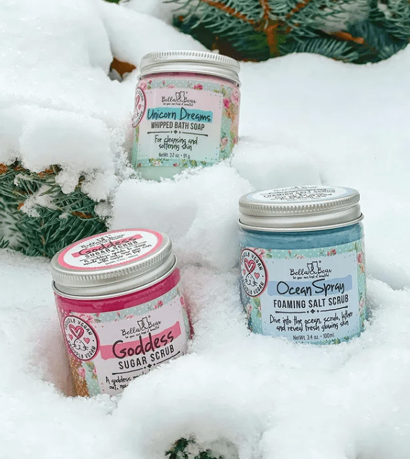 Transport yourself to a tropical paradise with Bella and Bear's Goddess Sugar Scrub! This luxurious scrub gently exfoliates, cleanses, and moisturizes, leaving your skin feeling incredibly soft, smooth, and radiant. Infused with the captivating scents of mango, pineapple, and a hint of coconut, it's a vacation for your senses!