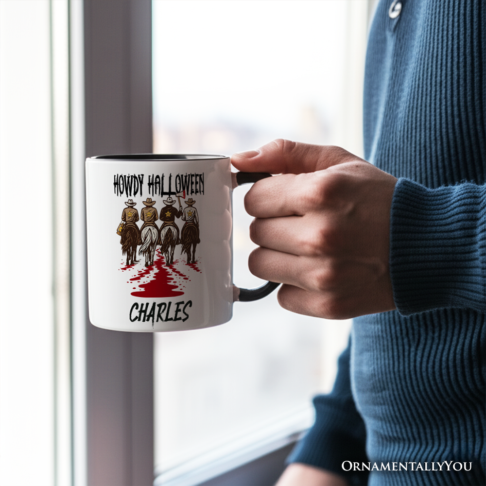 Howdy Halloween Cowboy Men Personalized Mug, Sheriff Western Riders Spooky Gift with Custom Name