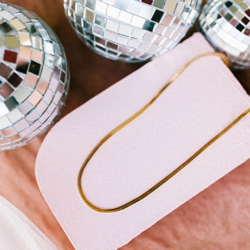 The Jade Herringbone Necklace is the perfect piece to stack with other necklaces or wear as a stand alone accessory. Available in 18k gold fill or sterling silver - tarnish and wear resistant, and made to last. Hypoallergenic and nickel free, this unique and dainty chain is the perfect accessory all year long. Available in 16" & 18", for however you choose to layer. 3mm width.
