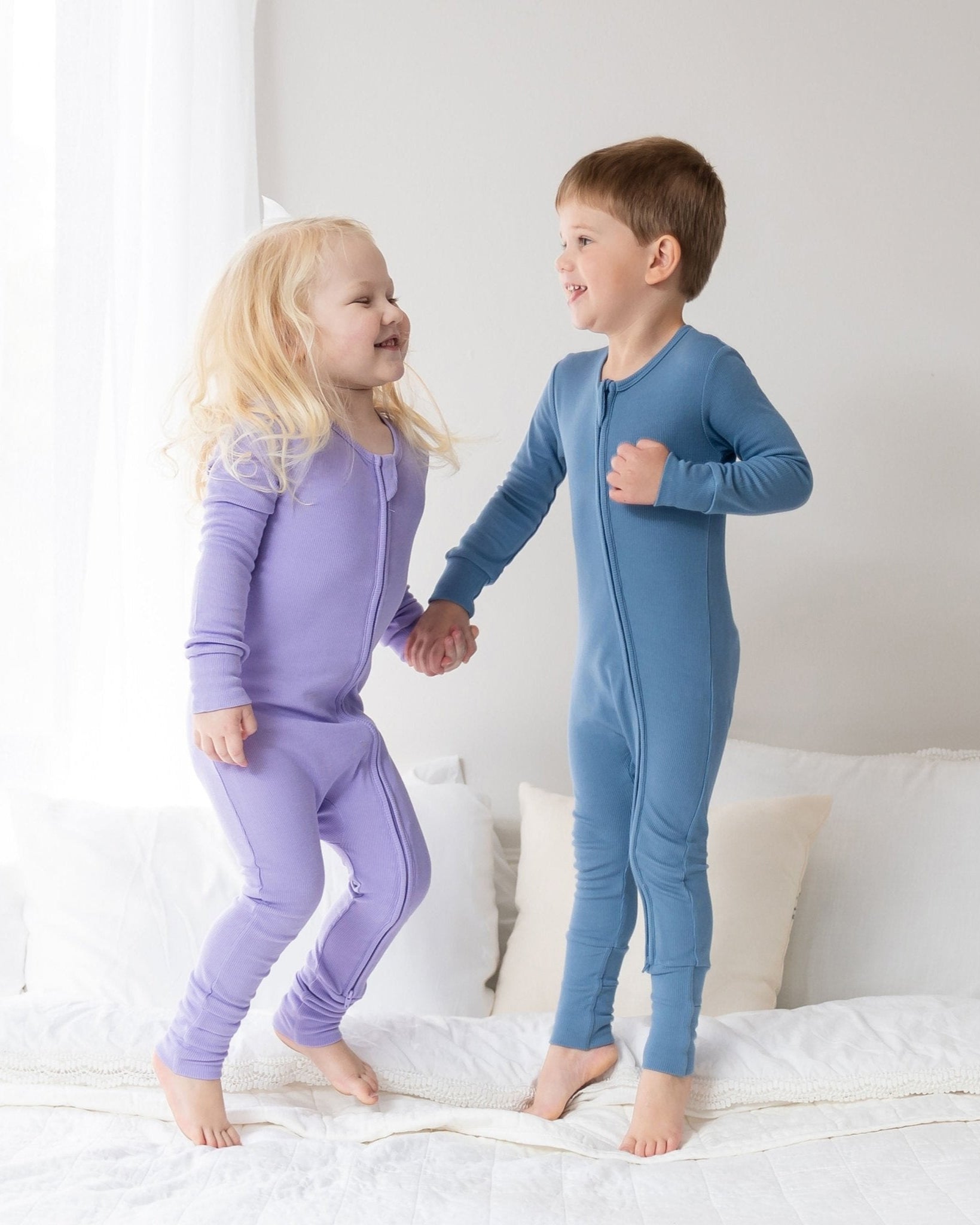 Add a timeless piece to your baby's closet with our ribbed bamboo toddler pajamas. The ribbed texture and cozy fit provide comfortable sleep for your little one. The bold colors and fold-over cuff feature make dressing and changing a breeze. A must-have for every baby's pajama collection.