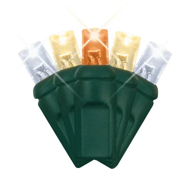 Transform your decor with our 5mm Amber, Warm White, and Cool White Twinkle LED Mini Lights on Green Wire. 50 twinkling lights in these captivating colors spaced 6 inches apart. Create a mesmerizing and festive atmosphere for any occasion.