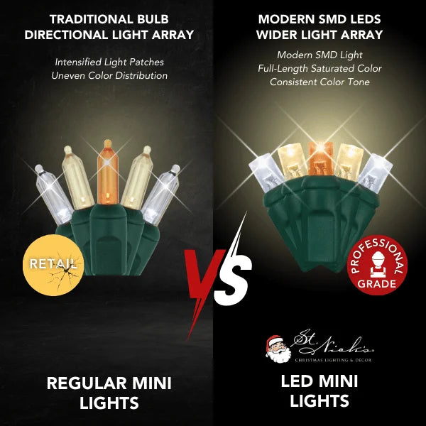 LED Mini Lights 5MM Amber/Warm White/Cool White Green Wire - 6" Spacing