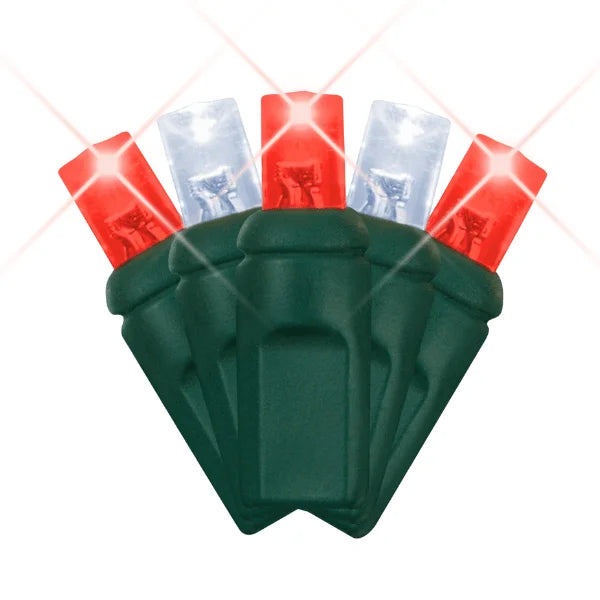 - Design: 5mm Red and Cool white twinkle LED mini lights, Green wire -6" Spacing, 50ct bulbs