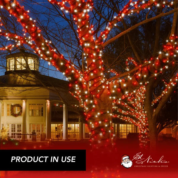 Transform your decor with our 5mm Red and Cool White Twinkle LED Mini Lights on Green Wire. Each box contains 25 strands, each featuring 50 twinkling lights spaced 6 inches apart. These enchanting lights, in red and cool white, create a stunning and festive atmosphere for any occasion.