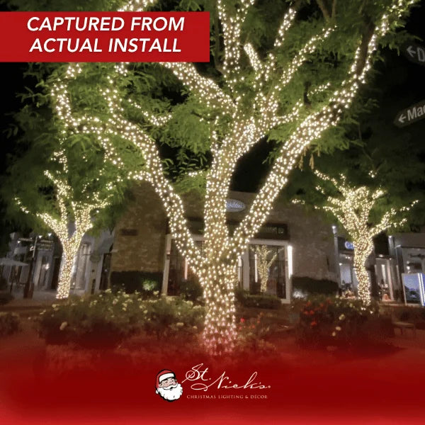 Add a charming touch to your holiday decorations with 5mm warm white LED mini lights on green wire. These lights bring a warm and inviting ambiance to your space, creating a festive and cheerful atmosphere.