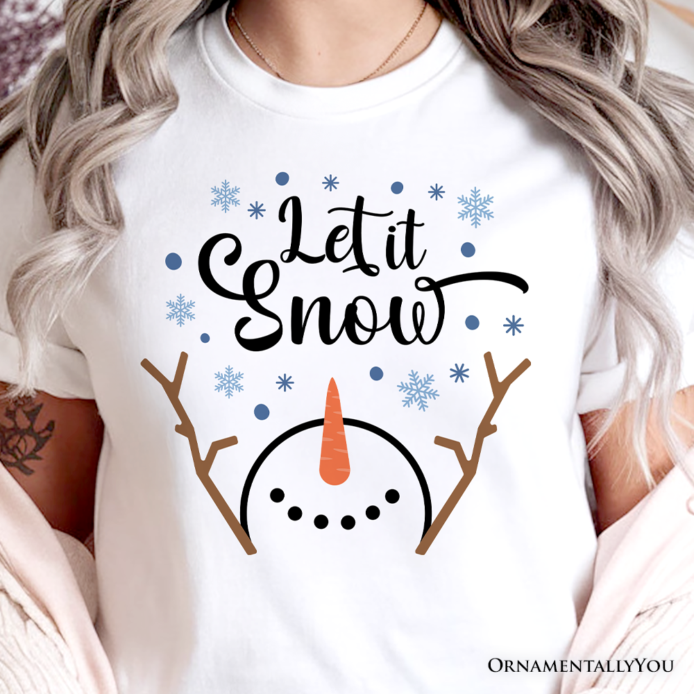Let It Snow Snowman T‑Shirt, Snowflakes Minimalist Tee for Winter Holiday Season