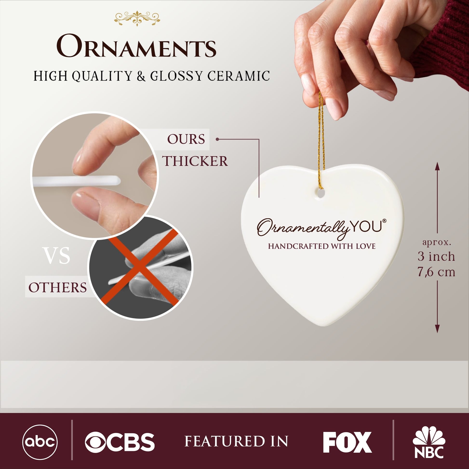🎁 Ornaments made with a high quality, glossy, and durable ceramic. Similar to porcelain