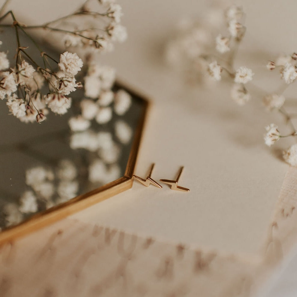 The Lightning Studs are the perfect accessory for any outfit. Available in high quality gold vermeil, these earrings are hypoallergenic, good for sensitive skin, and wear and tarnish resistant.