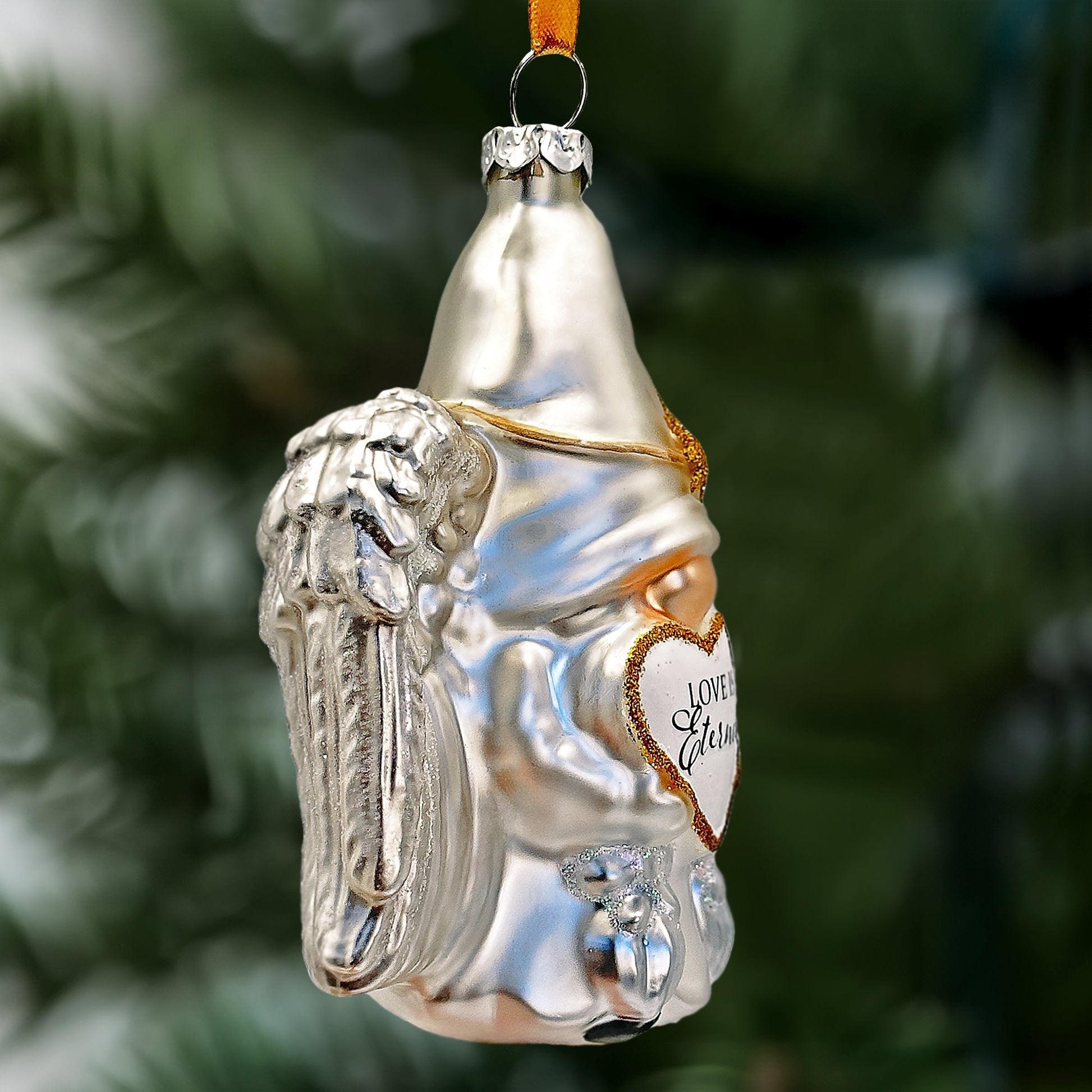 Love is Eternal Angelic Gnome Glass Ornament, White Angel Delicate Sentimental Tree Decoration