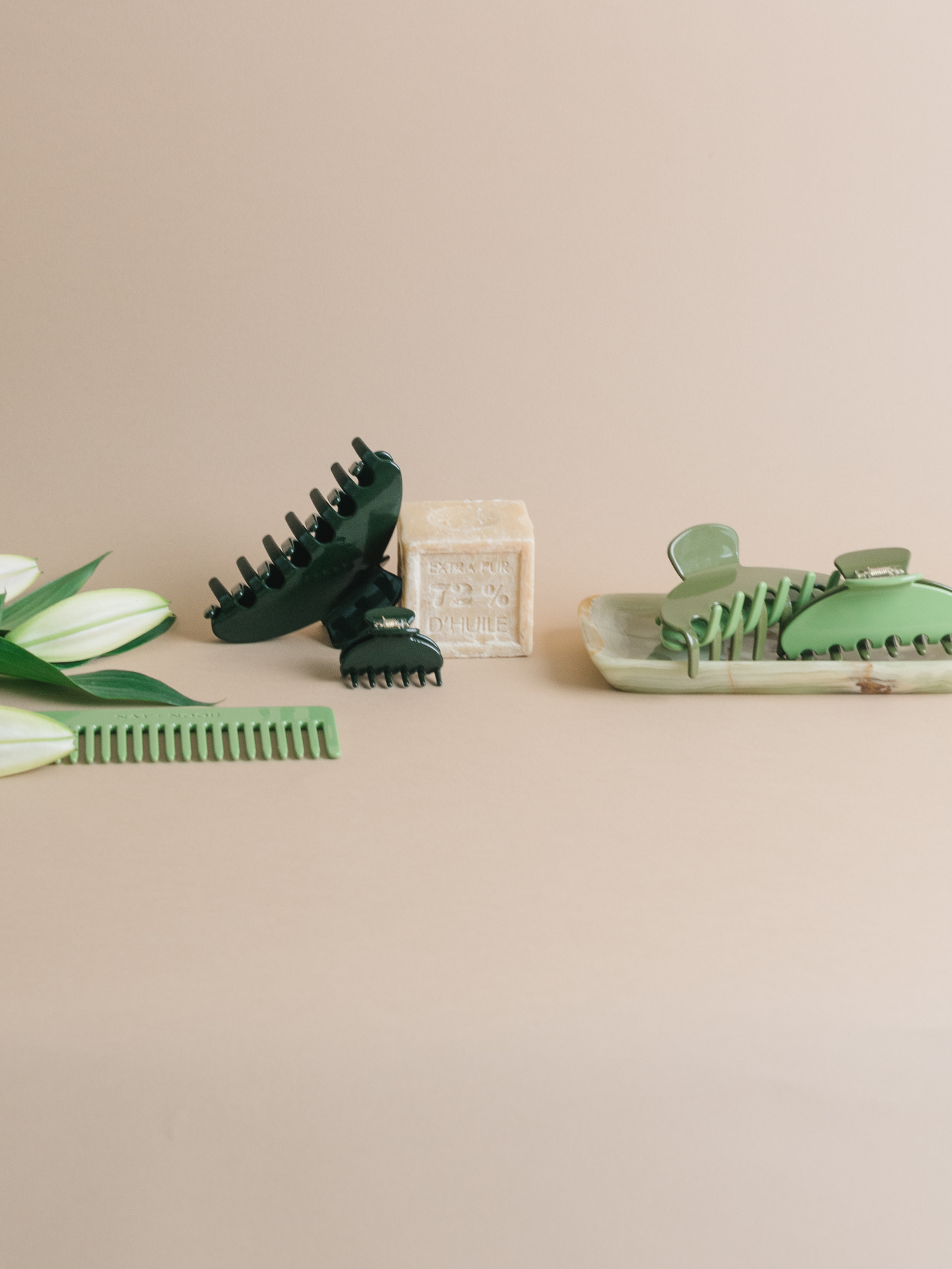 - cellulose acetate hair claw - a renewable material / resource essentially made from wood pulp