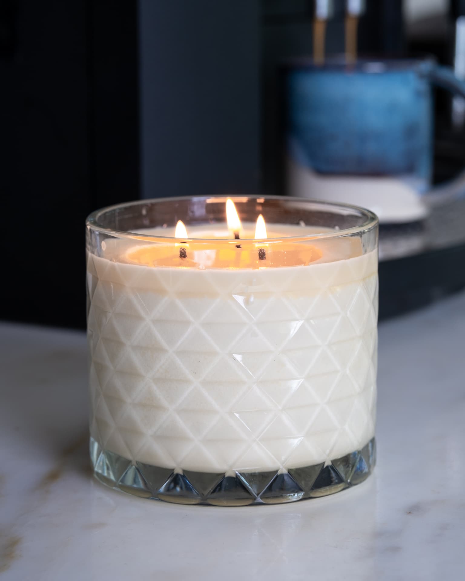 Earthy myrrh and whispering winter foliage create a serene glow fit for a quiet night beneath starlit skies.