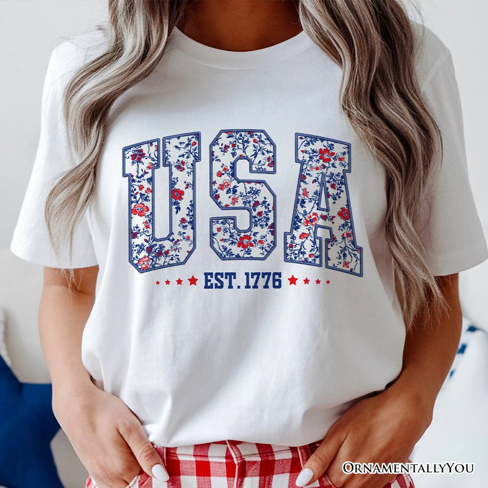 Patriotic USA Floral T-Shirt, 1776 Independence Day Tee