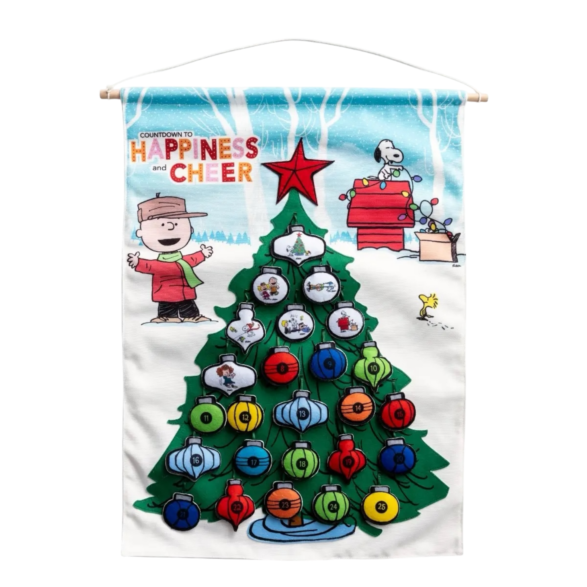 Measuring a generous 18 inches by 24 inches, this countdown is not only fun but also visually appealing, making it a perfect addition to any holiday décor. With 25 permanently attached felt ornaments and a convenient wooden dowel for easy display, this countdown is designed for longevity and ease of use. Made from durable polyester and felt, it’s simple to maintain—just wipe it clean with a damp cloth. Suitable for ages three and up, the Peanuts Christmas Countdown is the ideal gift for fans of all ages who want to celebrate the magic of Christmas with a touch of nostalgia and charm!