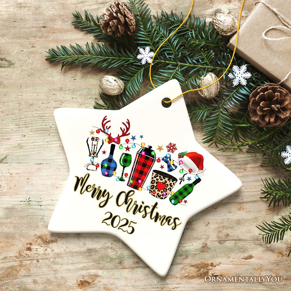 Personalized Bartender Buffalo Plaid Leopard Merry Christmas Ornament Gift