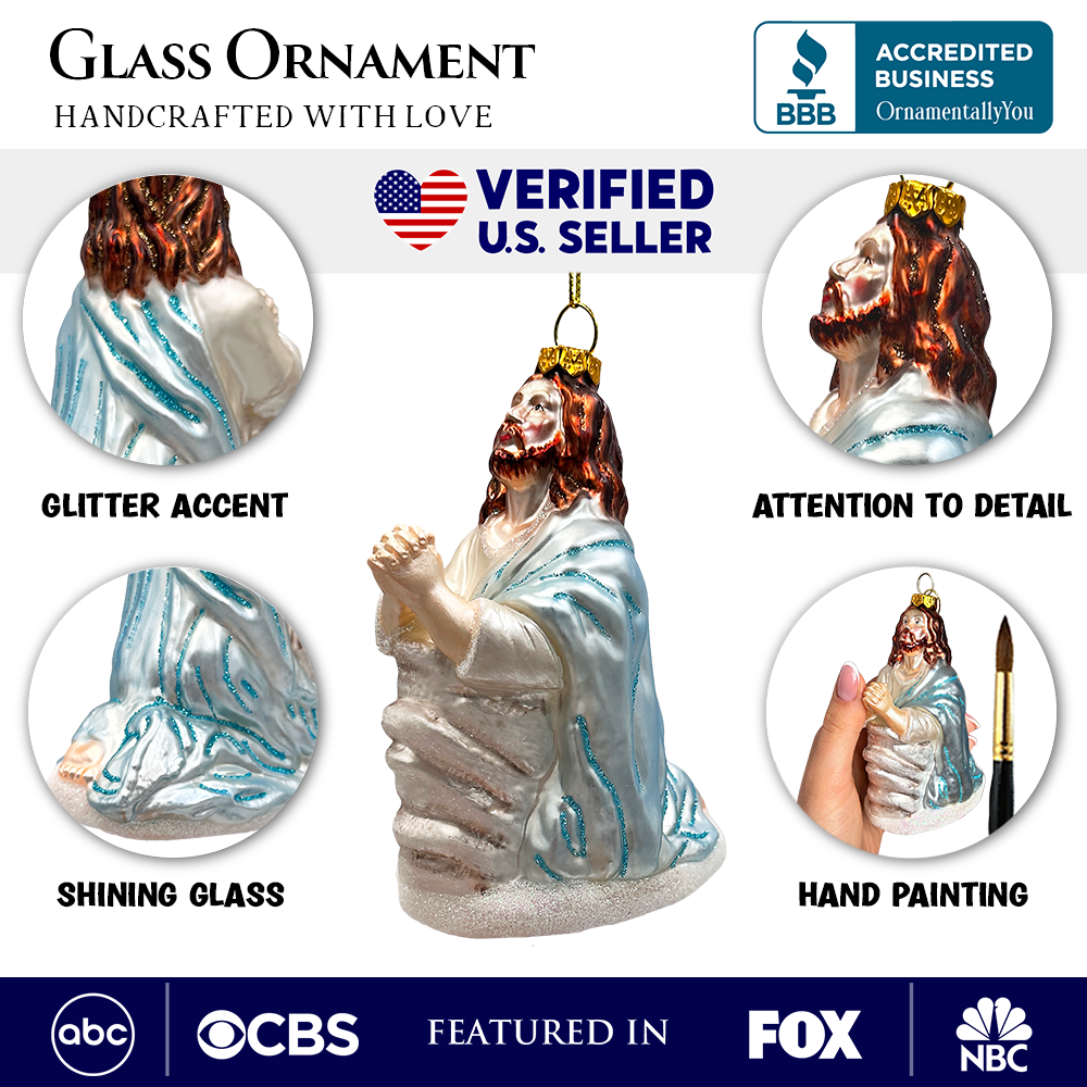 Praying Jesus Handcrafted Glass Christmas Ornament, Religious Christian Tree Decoration