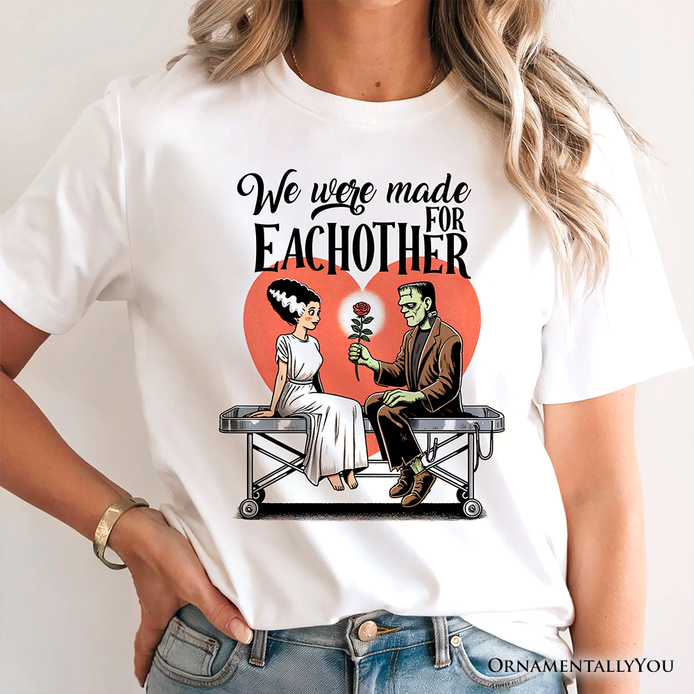 Romantic Frankenstein and Bride T-Shirt, We Were Made for Each Other Tee for Spooky Couples