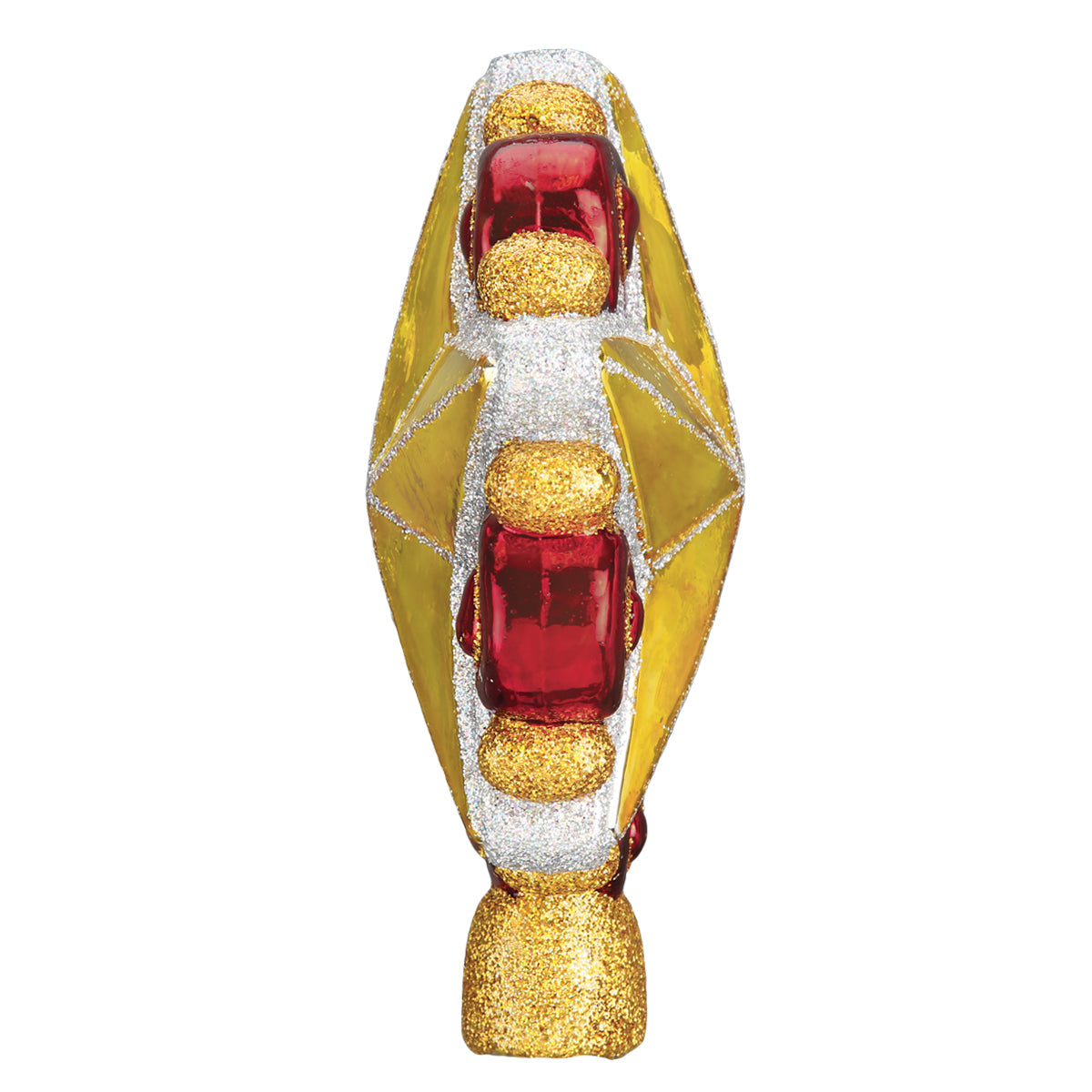 Our Swirly Star Tree Top completes any Christmas tree with style. The shining gold star and whimsical red swirls add whimsy to your holiday décor. Each blown-glass Christmas tree topper is handmade with great attention to detail, and is hand-painted and glittered, then packed with care into a printed Old World Christmas gift box. The Swirly Star Tree Top makes a great gift for new homeowners or newlyweds, helping create a new Tradition for them to Cherish!