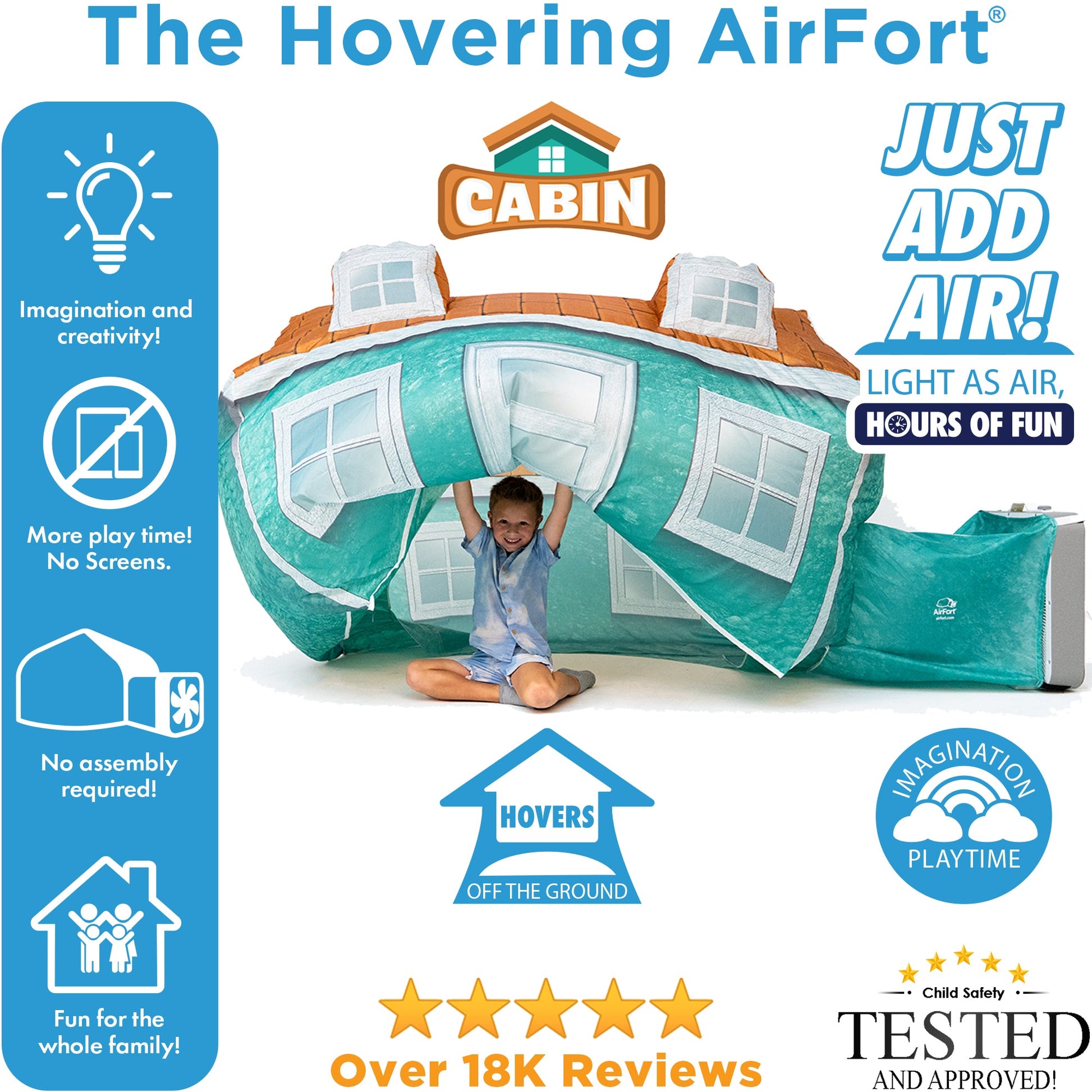 Let your children’s imagination run wild as you watch them transform into little campers in the AirFort Cabin design. Instantly feel like you’re out in the middle of the woods, next to a campfire, surrounded by trees and wildlife. With our slightly larger AirFort structure, the cabin design is sure to fit you and all your favorite camping friends as you create your own indoor campsite.
