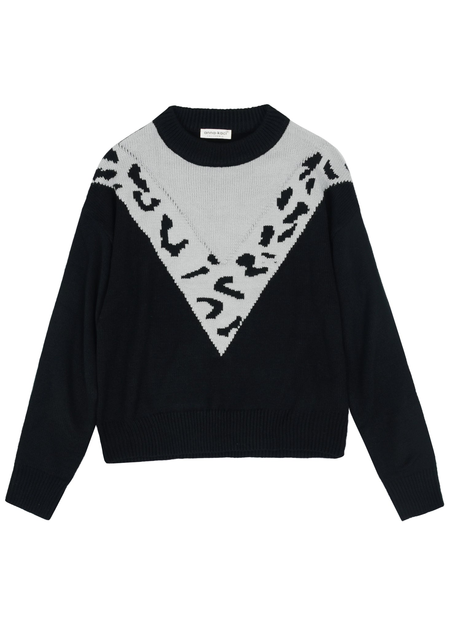 The Anna-Kaci sweater is detailed with a two tone design featuring minimalist cheetah prints on a solid color. Features a round neck line, drop shoulder, long sleeves, and a loose fit. Pair it with ripped jeans and pointed boots for a beautiful fall look.