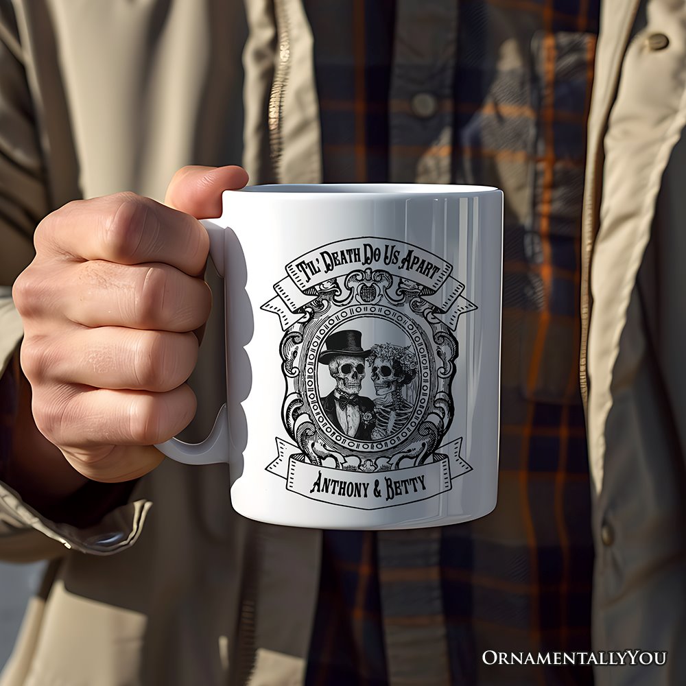 Vintage Skeleton Lovers Til' Death Do us Apart, Personalized Mug, Classic Antique Halloween Gift for Couples