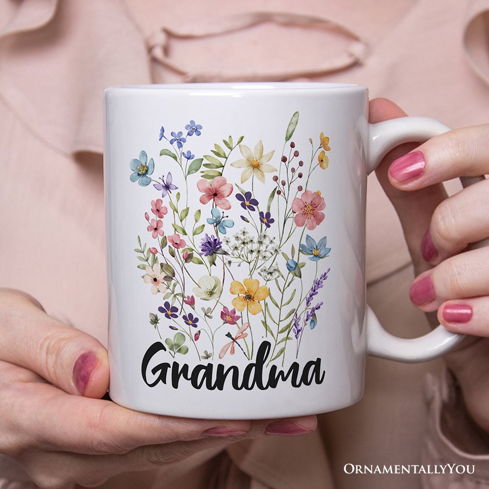 Wildflower Bouquet Personalized Mug, Floral Custom Gift with Name